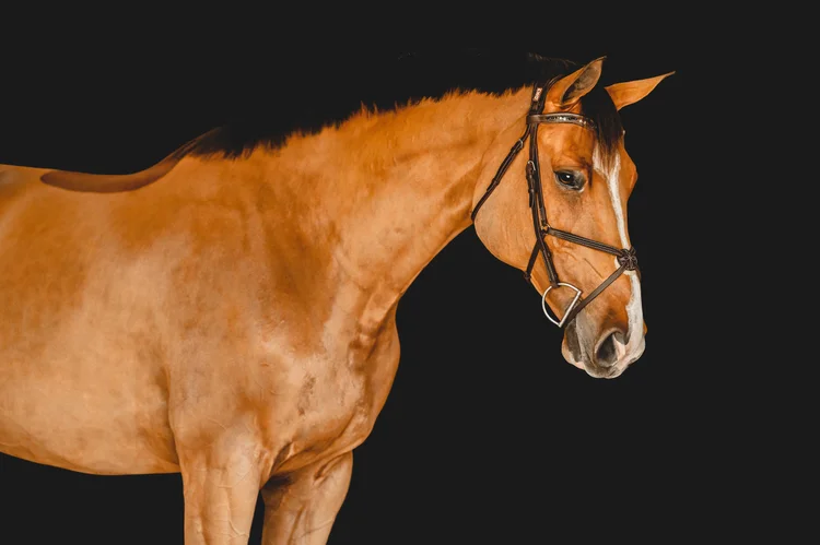 Horse Portrait In Bridle On Black Background Canstock